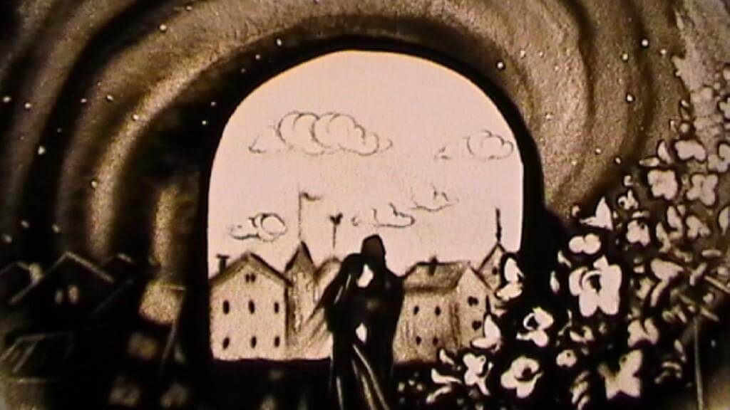 Oryginalne ilustracje w książce wykonane piaskiem